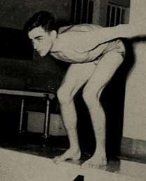 Jim’s senior season was marked by records, illness, and more records. Out of the pool, he was a member of the varsity football team and a cheerleader. He even threw the shot-put and hammer. A resident of Bishop, he was a member of Student Congress, and in the “senior superlatives” of the 1949 Pot Pourii, Jim was cited under both “athlete” and “modest.”