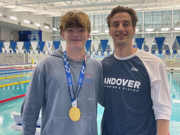 (Andover, MA) – For the first time since 2016, Andrew Wilson ’12, a 2020 Tokyo Olympics Gold Medalist in swimming, returned home to Andover this weekend.
