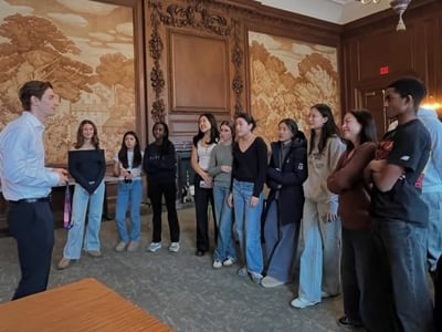 During his visit to campus, Andrew spoke at All School Meeting of the connections between his evolving understandings of success and its connections to his sense of self and his mental health. The public remarks clearly resonated with the community, with students who identify as student-athletes and those who do not. After ASM, Andrew had lunch with the members of Morgan’s Message, a mental health advocacy group, and with varsity captains.